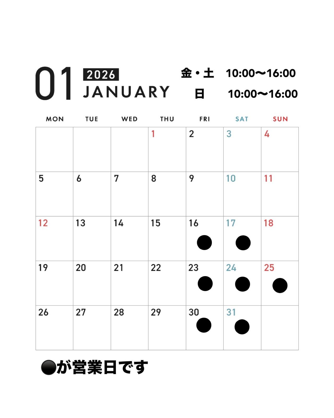 2025.12.31 1月の営業日